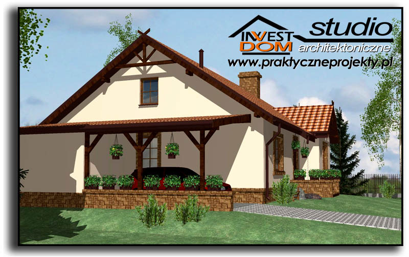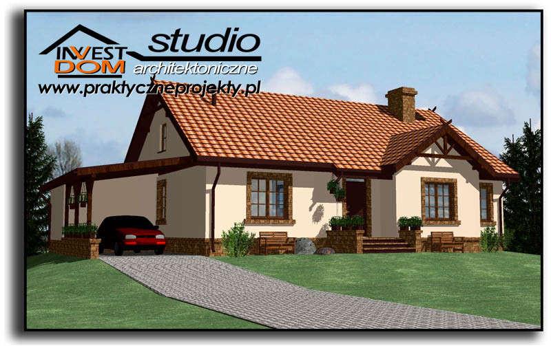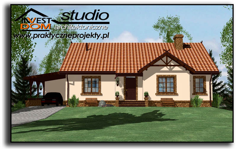 P09 117,5m2 Projekt małego taniego domu z wiatą