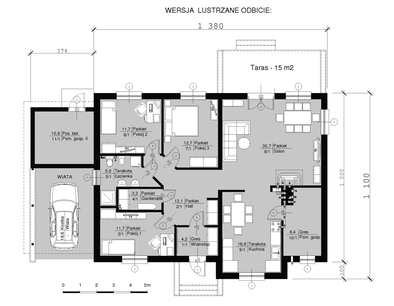 Powierzchnia zabudowy budynku w opcji bez wiaty i drewutni - 155,7m2