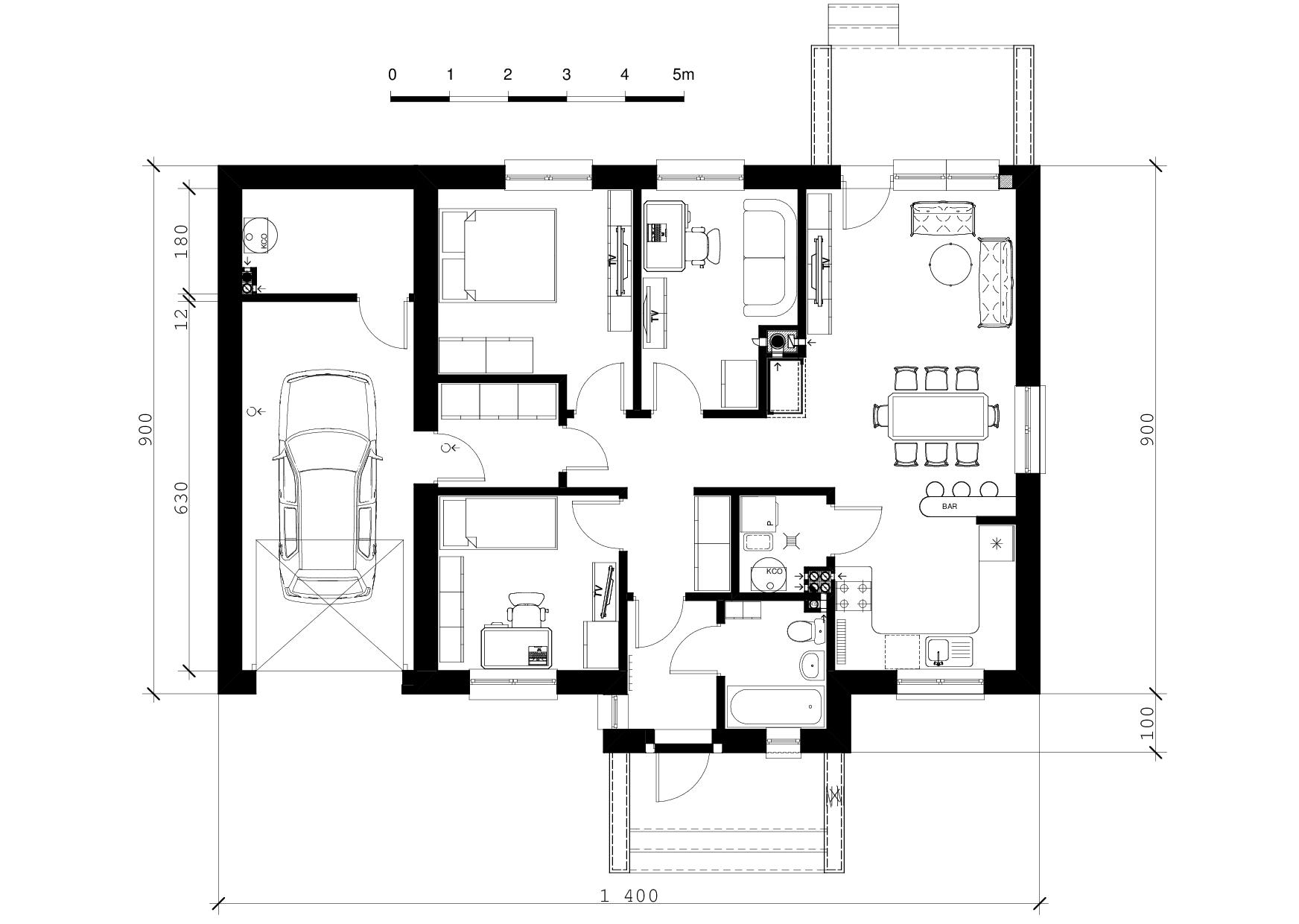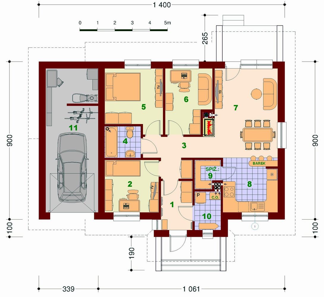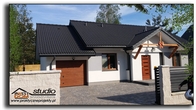 - Dom z możliwością budowy bez garażu (lub z garażem w drugim etapie) - w zależności od funduszy, ponieważ garaż nie jest konstrukcyjnie zależny od reszty budynku.