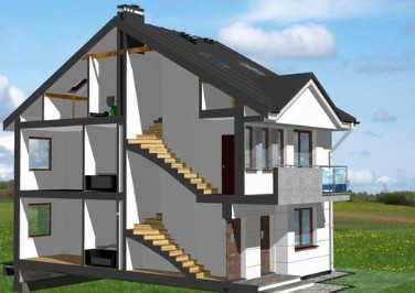 - Ciepłe ściany: bloczki z betonu komórkowego gr. 24cm + styropian 15cm; (możliwość dowolnej zmiany w czasie adaptacji)